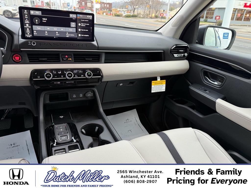 2026 Honda Passport RTL — V6, 3.5L Gasoline — Ashland, KY Discover a refined blend of power, comfort, and technology with this 2026 Honda Passport RTL, currently available in Ashland, KY. Powered by a smooth and responsive V6 3.5L gasoline engine, this Honda Passport delivers confident acceleration and capable towing for weekend adventures or daily driving. The RTL trim elevates comfort with premium leather seats that provide support for long trips and a sophisticated cabin atmosphere. Stay connected and on course with integrated navigation and hands-free Bluetooth®, making calls, streaming music, and following directions effortless. Safety is prioritized with a back-up camera for precise parking and maneuvering, plus adaptive cruise control to maintain a safe distance from traffic and reduce driver fatigue on highways. This Honda Passport balances rugged capability with refined features: comfortable leather upholstery, modern infotainment, and advanced driver-assist systems all come together to create a versatile SUV suited for families and outdoor enthusiasts alike. Located in Ashland, KY, this vehicle is being offered at the best price in the area, providing excellent value without compromising on features or performance. Schedule a test drive today to experience the responsive V6 performance, upscale interior, and advanced safety technology of this 2026 Honda Passport RTL — a smart choice for drivers seeking capability and comfort.