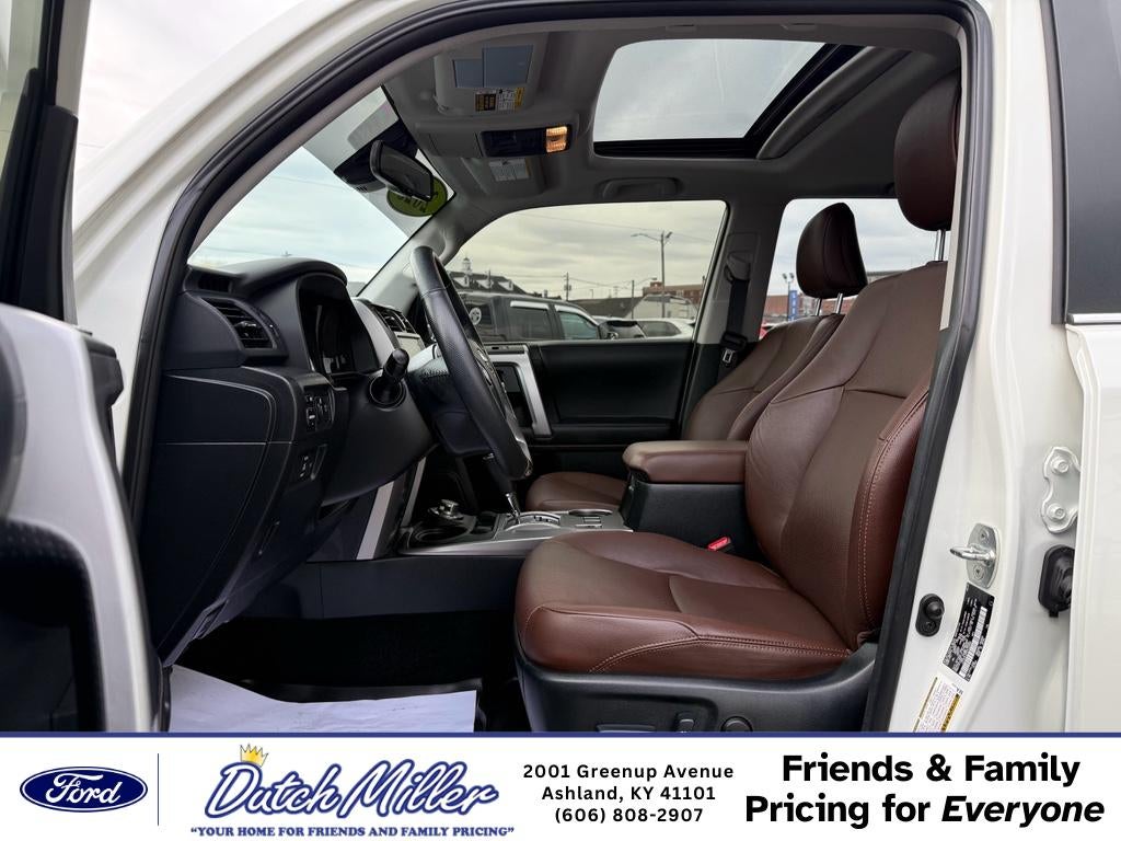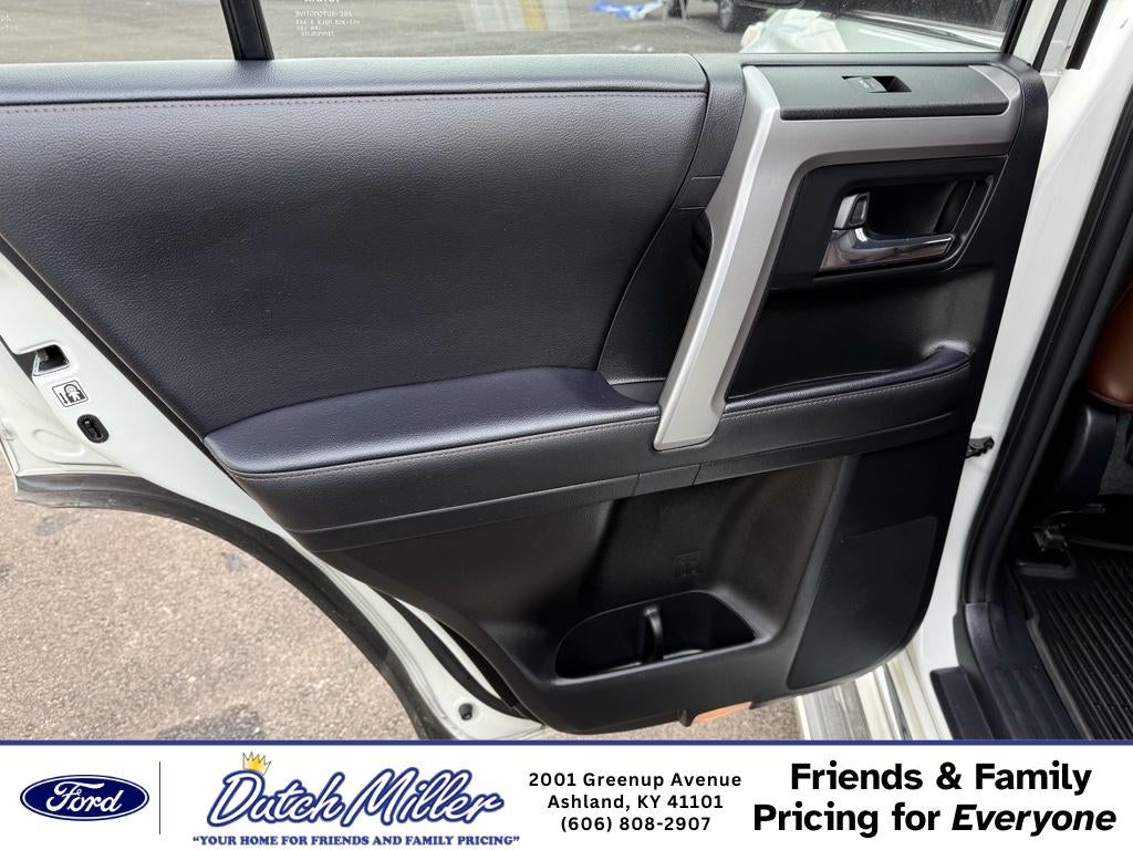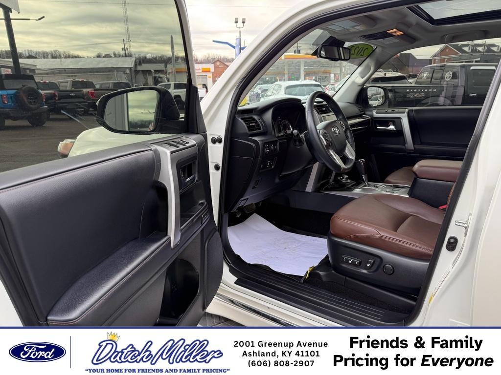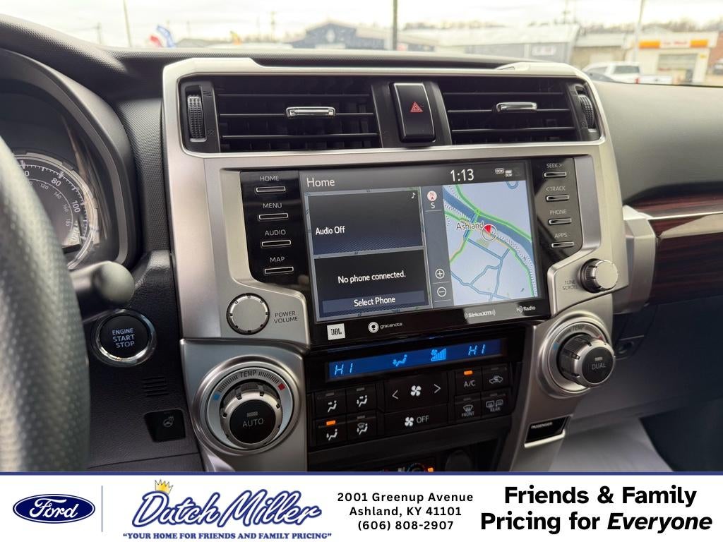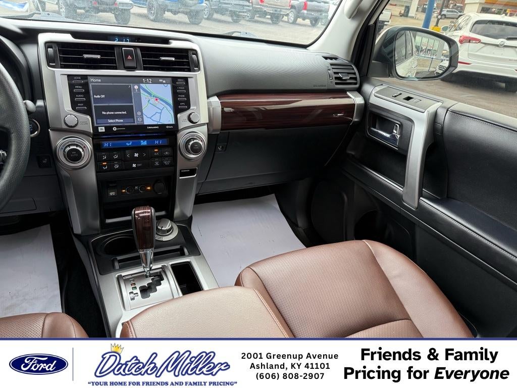 2023 Toyota 4Runner Limited – 4WD, V6, 4.0L - 31,639 miles - Ashland, KY Ready for adventure or daily driving, this 2023 Toyota 4Runner Limited pairs rugged capability with refined comfort. With a reliable 4.0L V6 engine and full-time 4WD, the Toyota 4Runner delivers confident performance on highways, backroads, and off-pavement routes. At just 31,639 miles, this Limited model offers exceptional value and longevity. Inside, premium leather seats and thoughtful amenities create a comfortable cabin for driver and passengers. Automatic climate control maintains ideal temperatures, while Apple CarPlay and Android Auto keep your favorite apps, navigation, and music seamlessly integrated for safer, connected driving. The Blind Spot Monitor enhances safety by alerting you to vehicles in adjacent lanes, giving added peace of mind on busy routes. This Toyota 4Runner Limited combines Toyota durability with upscale touches—perfect for families, outdoor lovers, and commuters who want capability without sacrificing comfort. The low mileage and robust maintenance history make it a smart investment for those seeking a dependable pre-owned SUV. Located in Ashland, KY, this 2023 Toyota 4Runner Limited is competitively priced and represents the best price for this model and condition. Don't miss the chance to own a well-equipped, versatile SUV that balances performance, safety, and modern connectivity. Contact us to schedule a test drive and see why this is the right Toyota 4Runner for you.