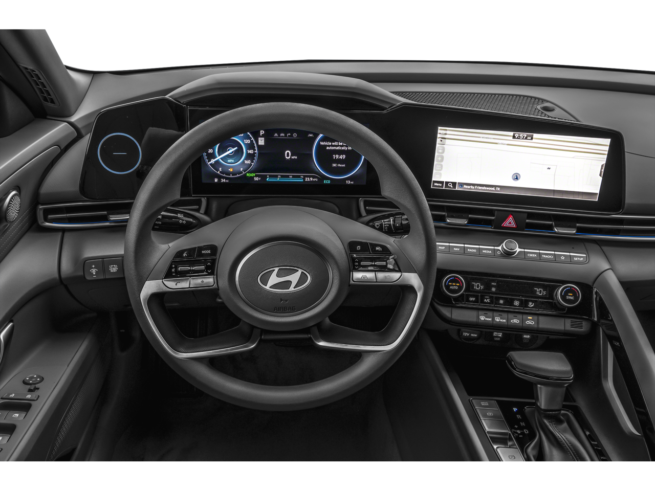 Apple CarPlay: Seamless smartphone integration for the Hyundai Elantra Hybrid - stay connected and entertained on the go! Bluetooth® technology is built into this small car, keeping your hands on the steering wheel and your focus on the road. See what's behind you with the back up camera on this Hyundai Elantra Hybrid. This vehicle offers Android Auto for seamless smartphone integration. Never get into a cold vehicle again with the remote start feature on the Hyundai Elantra Hybrid. This small car offers Automatic Climate Control for personalized comfort. You'll never again be lost in a crowded city or a country region with the navigation system on this Hyundai Elantra Hybrid. Set the temperature exactly where you are most comfortable in it. The fan speed and temperature will automatically adjust to maintain your preferred zone climate. This model is front wheel drive. With the keyless entry system on this 2024 Hyundai Elantra Hybrid you can pop the trunk without dropping your bags from the store.