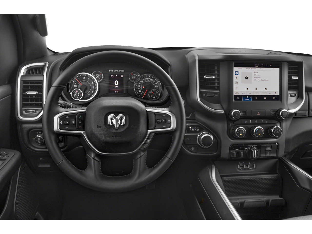 Quick Order Package 27Z Big Horn: Big Horn Badge. Big Horn Level 1 Equipment Group: Google Android Auto; SiriusXM Radio Service; Bluetooth® Handsfree Phone and Audio; USB Host Flip; Rear Window Defroster; Rear View Auto Dim Mirror; For Details. Visit DriveUconnect.com; For More Info. Call 800-643-2112; Rear Power Sliding Window; Rear Dome with On/off Switch Lamp; Front Fog Lamps; Connectivity - US/Canada; Glove Box Lamp; 4G LTE Wi-Fi Hot Spot; Exterior Mirrors with Heating Element; Auto Dim Exterior Driver Mirror; Global Telematics Box Module; Heated Front Seats; Heated Steering Wheel; Class IV Receiver Hitch; Black Premium Power Mirrors; Apple CarPlay; Big Horn Instrument Panel Badge; SiriusXM Satellite Radio; Exterior Mirrors with Supplemental Signals; Exterior Mirrors Courtesy Lamps; Passenger Sun Visor with Illuminated Mirror; Electric Shift on Demand Transfer Case; Power-Folding Mirrors; 2nd Row in Floor Storage Bins; Convex Wide-Angle Exterior Mirror Insert. Sport Appearance Package: 275/55R20 OWL All Season Tires; Deluxe Cloth Bucket Seats; Exterior Mirrors with Supplemental Signals; Body Color Premium Power Mirrors; Body Color Door Handles; Exterior Mirrors Courtesy Lamps; RAM Grille Badge - Chrome; Exterior Mirrors with Heating Element; Auto Dim Exterior Driver Mirror; Body Color Exterior Mirrors; Grille Surround 1 Body Color Texture 2 Black; Black Interior Accents; Power-Folding Mirrors; Body Color Front Bumper; Convex Wide-Angle Exterior Mirror Insert; Body Color Rear Bumper with Step Pads. Quick Order Package 23Z Big Horn: Big Horn Badge. 20" X 9" Aluminum Chrome Clad Wheels. Uconnect 5 Navigation Radio with 8.4" Display. Deluxe Cloth Bucket Seats. Trailer Brake Control. Remote Start System. Patriot Blue Pearlcoat. Patriot Blue Pearlcoat. MOPAR Front and Rear Rubber Floor Mats. **Equipment listed is based on original vehicle build and subject to change. Please confirm the accuracy of the included equipment by calling the dealer prior to purchase.**
